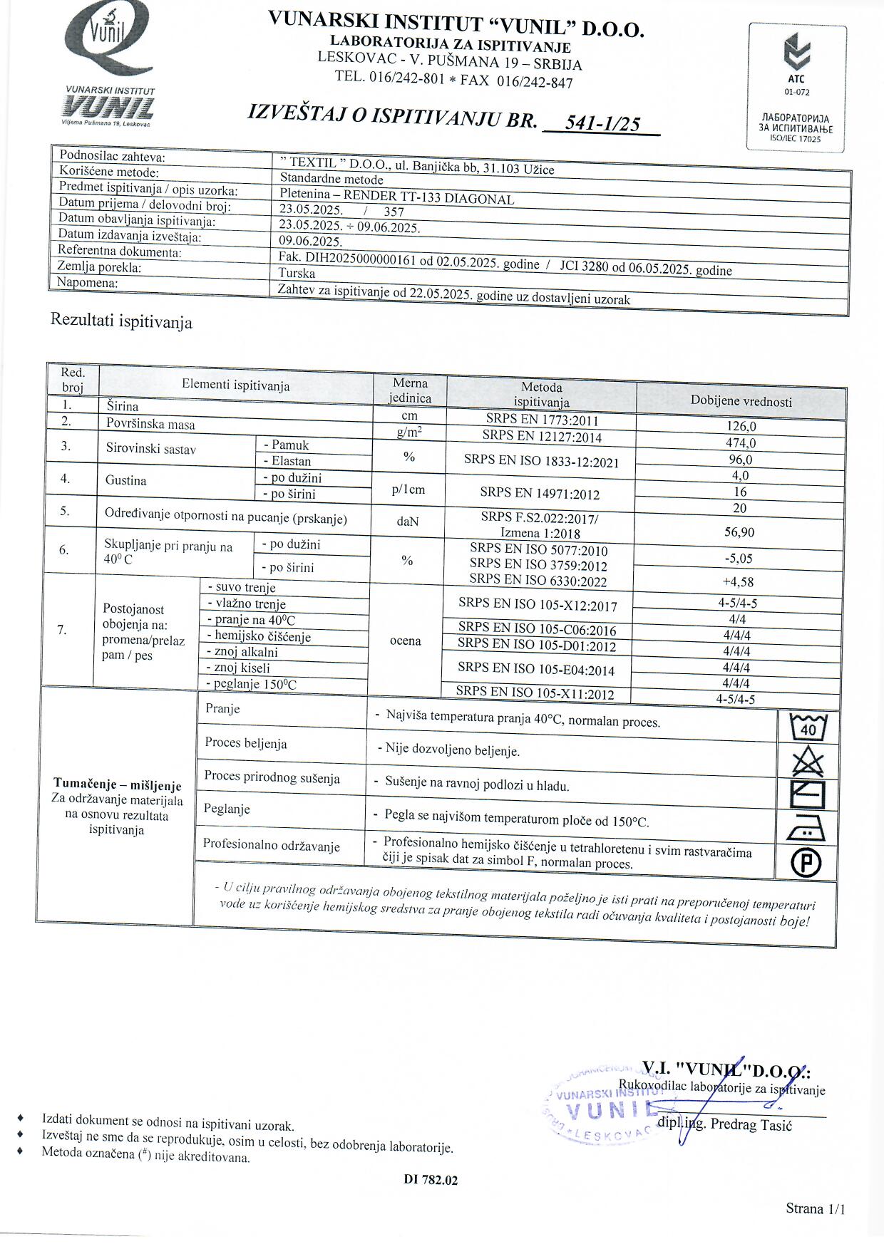 Render je veoma rastegljiva pamučna tkanina, rebraste strukture. Srednje je gramaže i obično se koristi kao prateći materijal za futer. Od njega se mogu šiti: ranfle na rukavima, nogavicama, pojasu, kao i odeća koja zahteva veliku elastičnost.