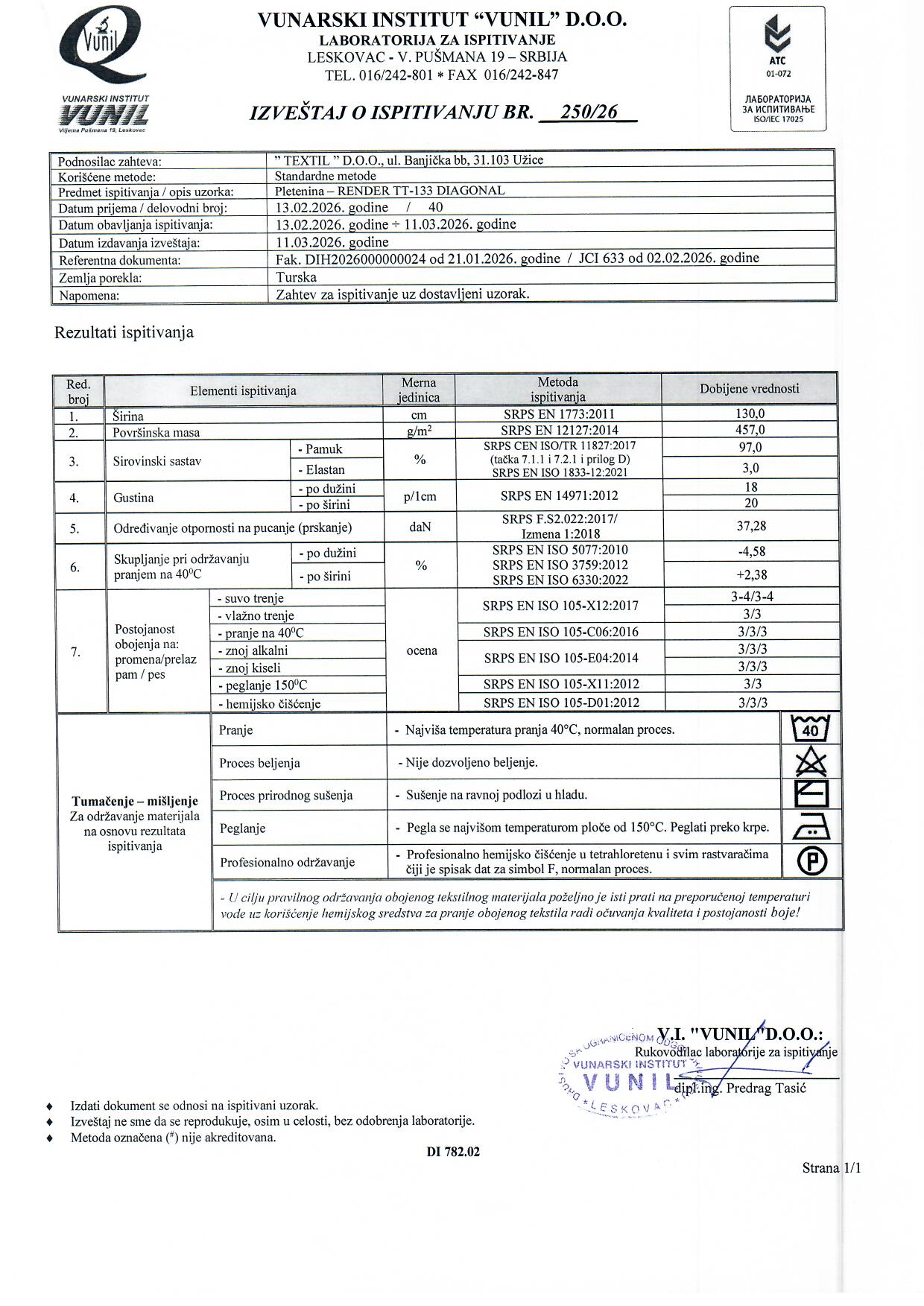 Render je veoma rastegljiva pamučna tkanina, rebraste strukture. Srednje je gramaže i obično se koristi kao prateći materijal za futer. Od njega se mogu šiti: ranfle na rukavima, nogavicama, pojasu, kao i odeća koja zahteva veliku elastičnost.